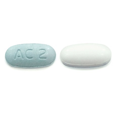 White and light blue biconvex oval double tablets